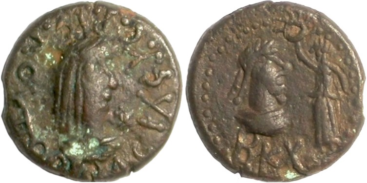 ΒΑCΙΛΕωC ΡΗCΚΟΥΠΟΡΙC. Бюст царя вправо, справа звезда