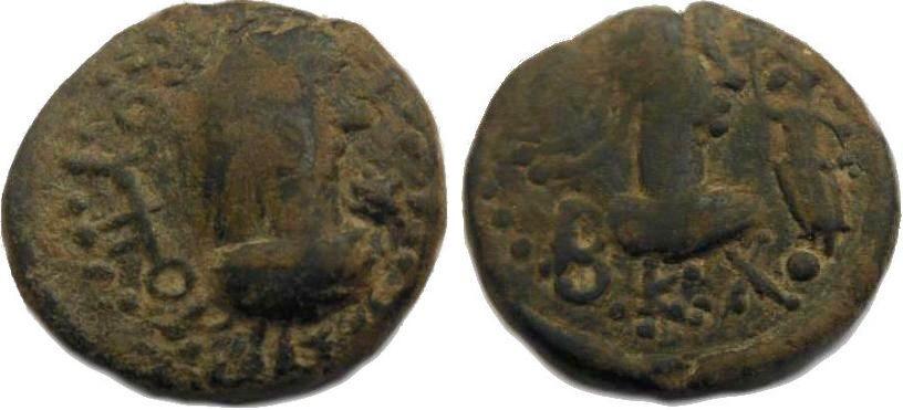 ΒΑCΙΛΕωC ΡΗCΚΟΥΠΟΡΙC. Бюст царя вправо, справа звезда
