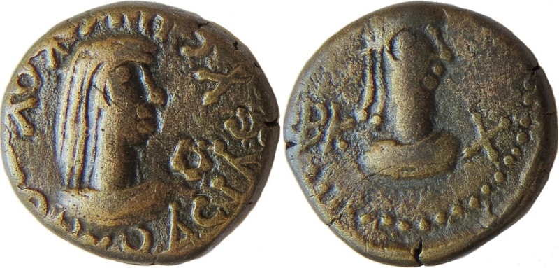 ΒΑCΙΛΕωC ΡΗCΚΟΥΠΟΡΙC. Бюст царя вправо, справа «венок»