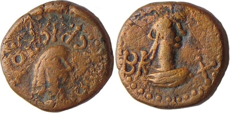 ΒΑCΙΛΕωC ΡΗCΚΟΥΠΟΡΙC. Бюст царя вправо, справа «венок»