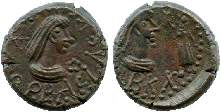 ΒΑCΙΛΕωC ΡΗCΚΟΥΠΟΡΙC. Бюст царя вправо, справа «венок»