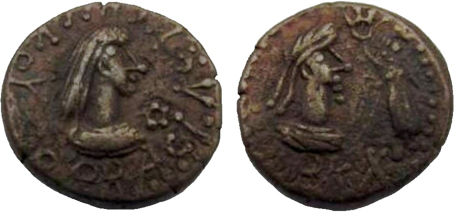 ΒΑCΙΛΕωC ΡΗCΚΟΥΠΟΡΙC. Бюст царя вправо, справа «венок»