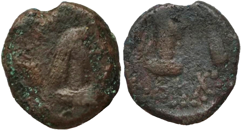 ΒΑCΙΛΕωC ΡΗCΚΟΥΠΟΡΙC. Бюст царя вправо, справа «венок»
