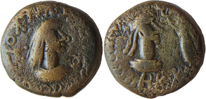 ΒΑCΙΛΕωC ΡΗCΚΟΥΠΟΡΙC. Бюст царя вправо, справа «венок»