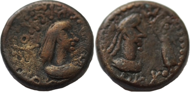 ΒΑCΙΛΕωC ΡΗCΚΟΥΠΟΡΙC. Бюст царя вправо, справа «венок»