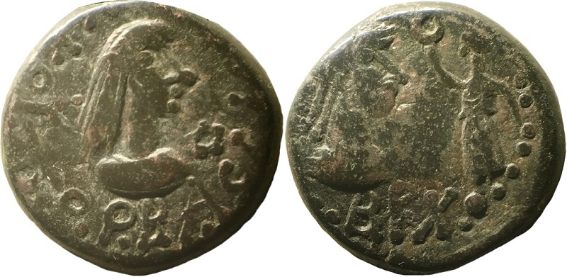 ΒΑCΙΛΕωC ΡΗCΚΟΥΠΟΡΙC. Бюст царя вправо, справа «венок»