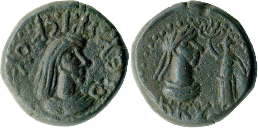 ΒΑCΙΛΕωC ΡΗCΚΟΥΠΟΡΙC. Бюст царя вправо, справа «венок»