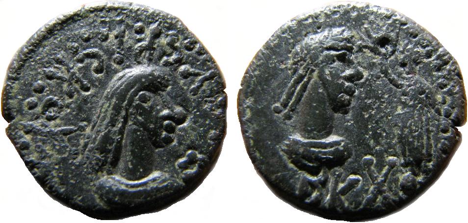 ΒΑCΙΛΕωC ΡΗCΚΟΥΠΟΡΙC. Бюст царя вправо, справа «венок»