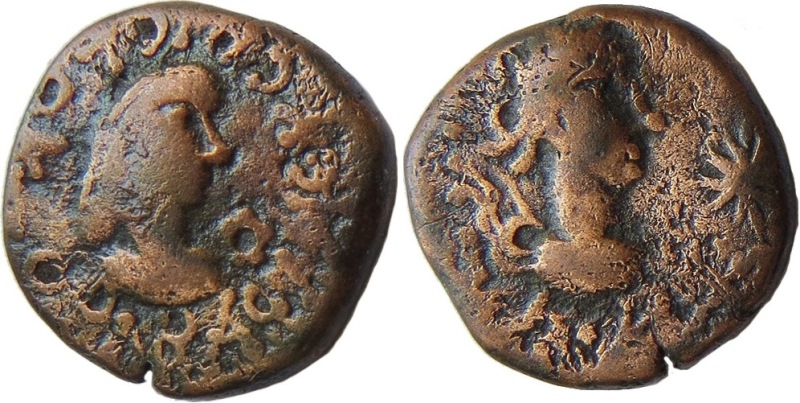 Бюст императора вправо, внизу год ВKX (622 г. б. э.), «звезда»