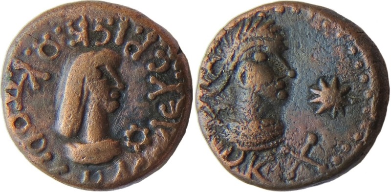 Бюст императора вправо, внизу год ВKX (622 г. б. э.), «звезда»