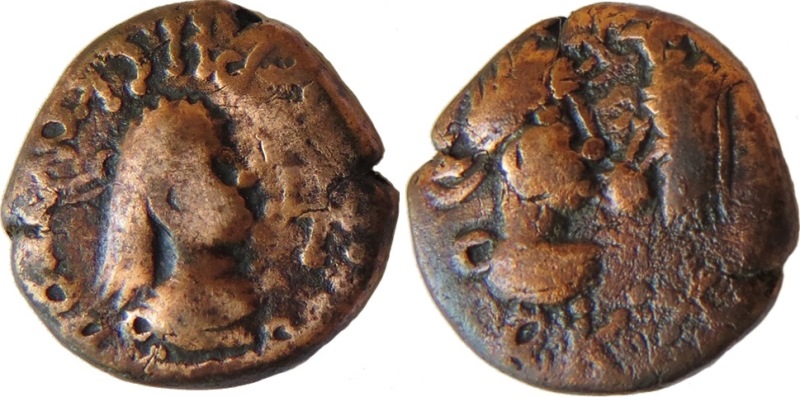 ΒΑCΙΛΕωC ΡΗCΚΟΥΠΟΡΙC. Бюст царя вправо, справа трезубец