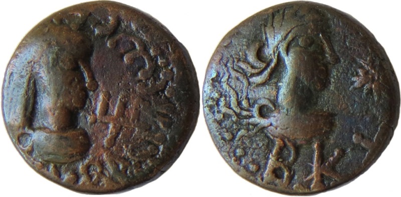Бюст императора вправо, внизу год ВKX (622 г. б. э.), «звезда»