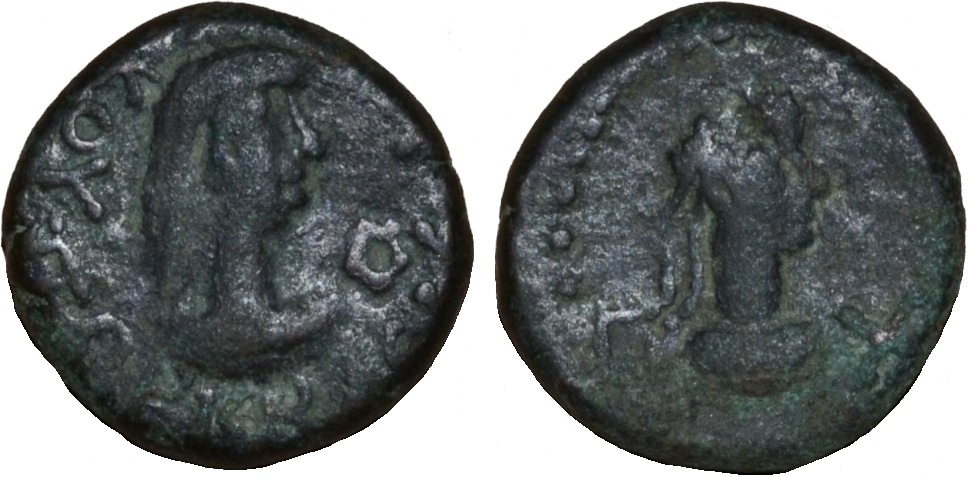 - ΒΑCΙΛΕΥC ΡΗCΚΟΥΠΟΡΙC. Бюст царя вправо, справа венок