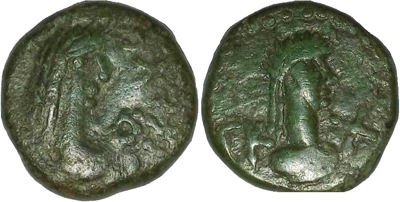- ΒΑCΙΛΕΥC ΡΗCΚΟΥΠΟΡΙC. Бюст царя вправо, справа венок
