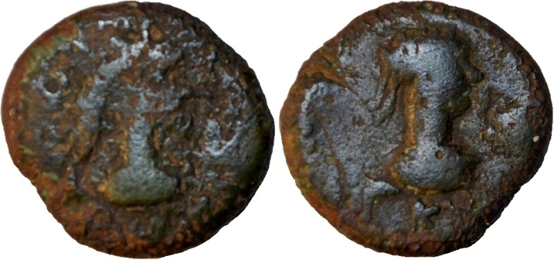 - ΒΑCΙΛΕΥC ΡΗCΚΟΥΠΟΡΙC. Бюст царя вправо, справа венок