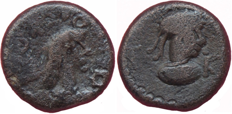 - ΒΑCΙΛΕΥC ΡΗCΚΟΥΠΟΡΙC. Бюст царя вправо, справа венок