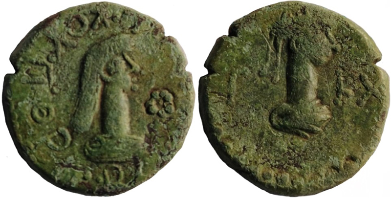 - ΒΑCΙΛΕΥC ΡΗCΚΟΥΠΟΡΙC. Бюст царя вправо, справа венок