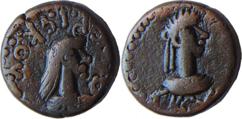 - ΒΑCΙΛΕΥC ΡΗCΚΟΥΠΟΡΙC. Бюст царя вправо, справа венок