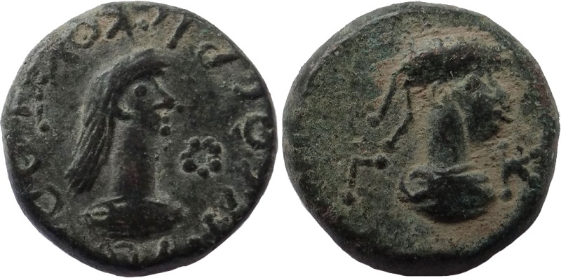 - ΒΑCΙΛΕΥC ΡΗCΚΟΥΠΟΡΙC. Бюст царя вправо, справа венок