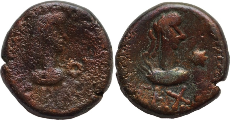 Бюст императора вправо, внизу год ГKX (623 г. б. э.), «звезда»
