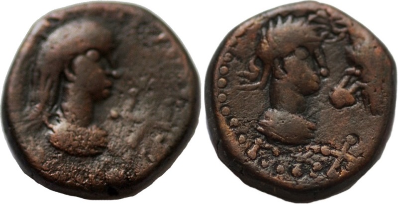 ΒΑCΙΛΕωC ΡΗCΚΟΥΠΟΡΙC. Бюст царя вправо, справа трезубец