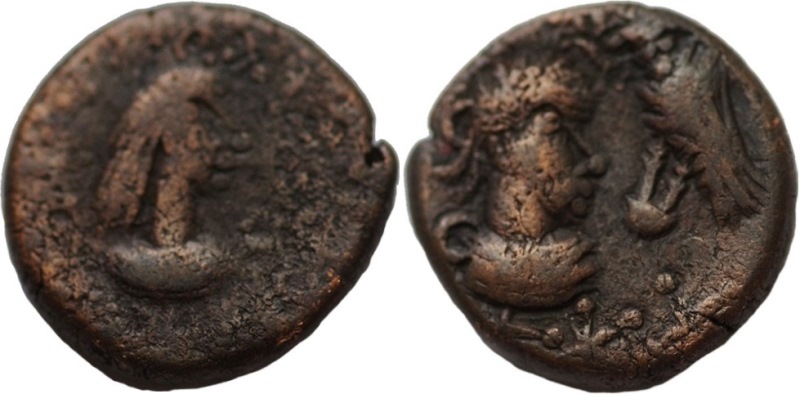 ΒΑCΙΛΕΥC ΡНCΚΟΥΠΟΡ. Бюст царя вправо, справа венок