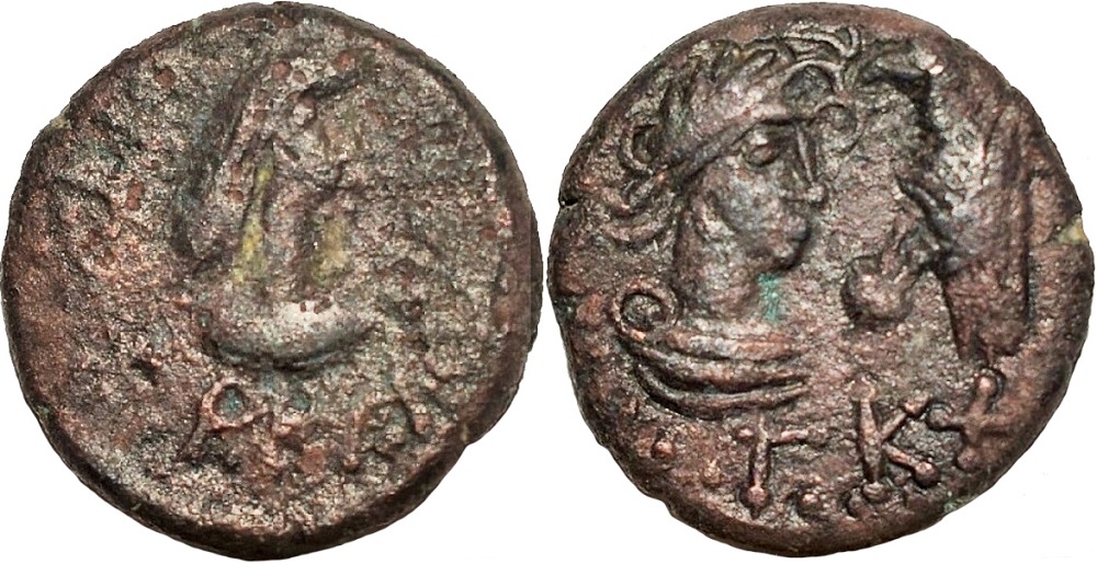 ΒΑCΙΛΕΥC ΡНCΚΟΥΠΟΡ. Бюст царя вправо, справа венок