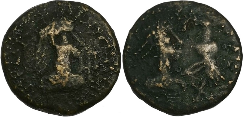 ΒΑCΙΛΕωC ΡΗCΚΟΥΠΟΡΙC. Бюст царя вправо, справа трезубец