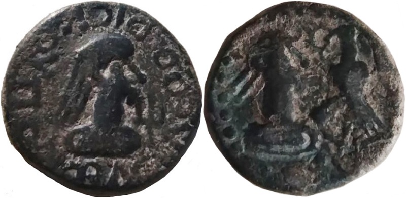 Бюст императора вправо, внизу год ГKX (623 г. б. э.), справа орел на шаре с венком в клюве
