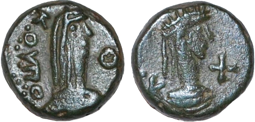 ....ΚΟΥΠΟ.... Бюст царя вправо, справа венок