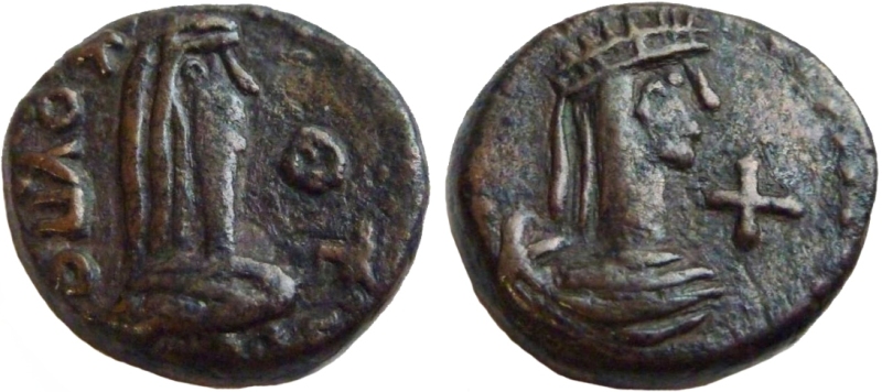 ....ΚΟΥΠΟ.... Бюст царя вправо, справа венок