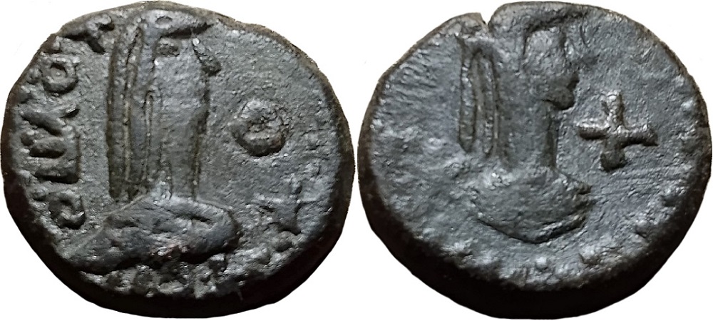 ....ΚΟΥΠΟ.... Бюст царя вправо, справа венок