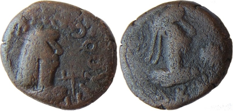 ΒΑCΙΛΕωC ΡΗCΚΟΥΠΟΡΙC. Бюст царя вправо, справа трезубец