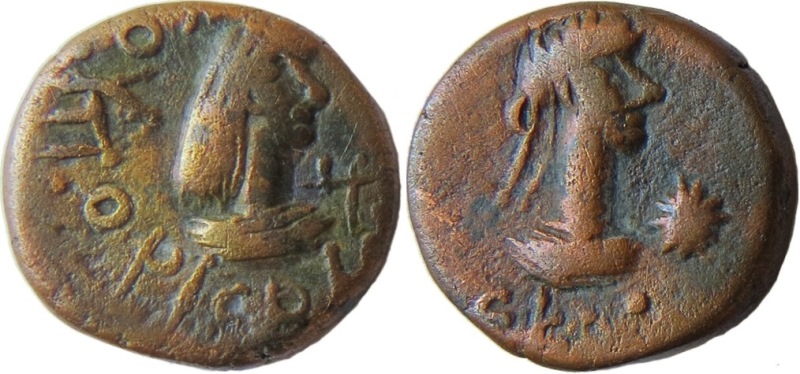 ΒΑCΙΛΕΟC ΡΗCΚΟΥΠΟΡΙC. Бюст царя вправо, справа трезубец