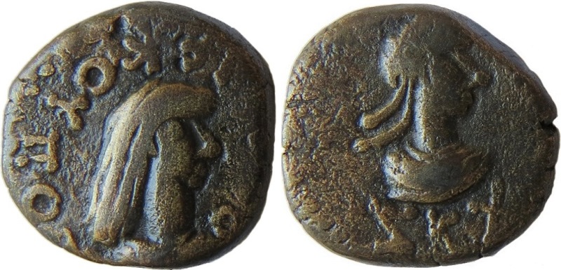 ΒΑCΙΛΕωC ΡΗCΚΟΥΠΟΡΙC. Бюст царя вправо, справа «венок»